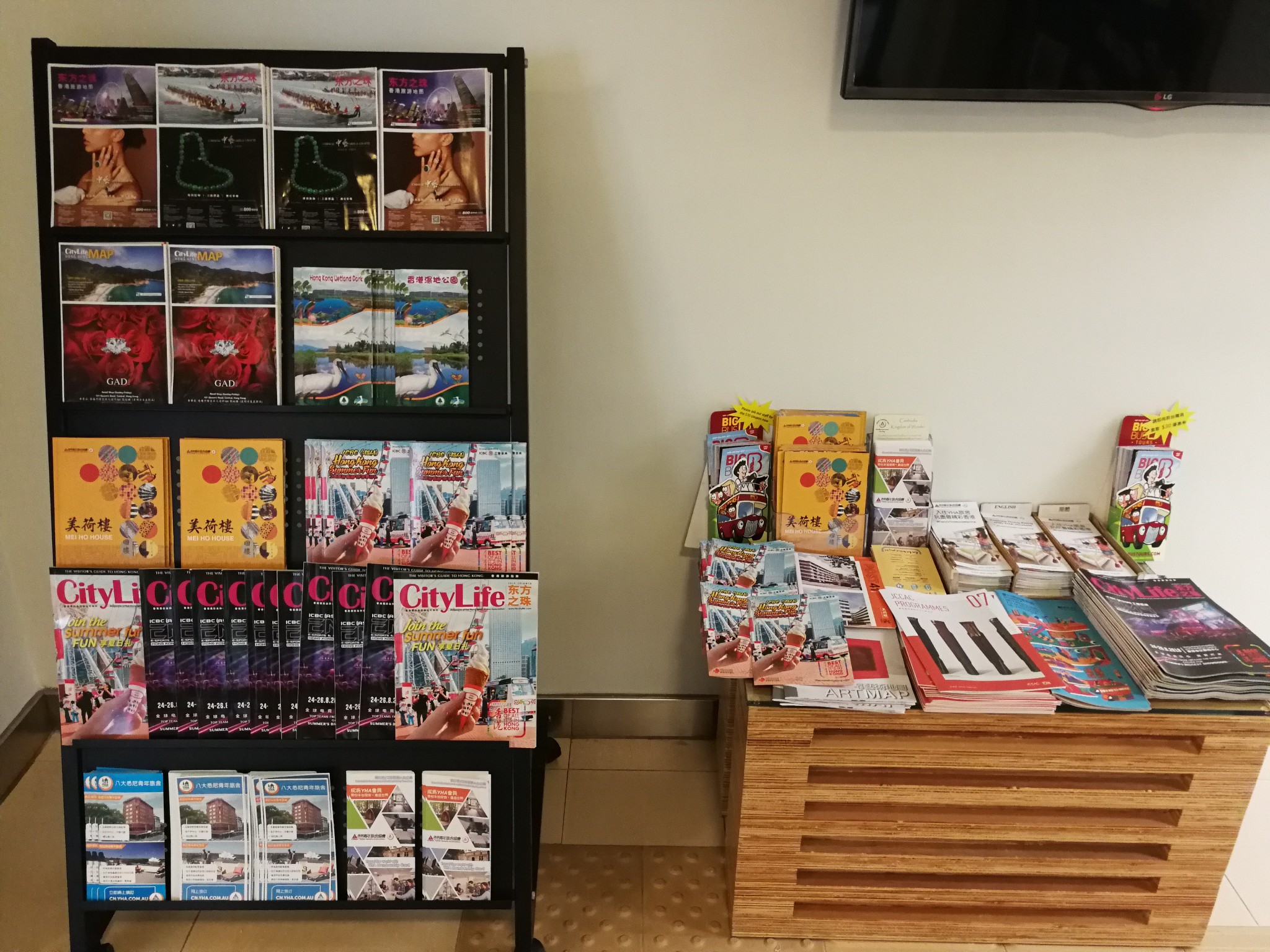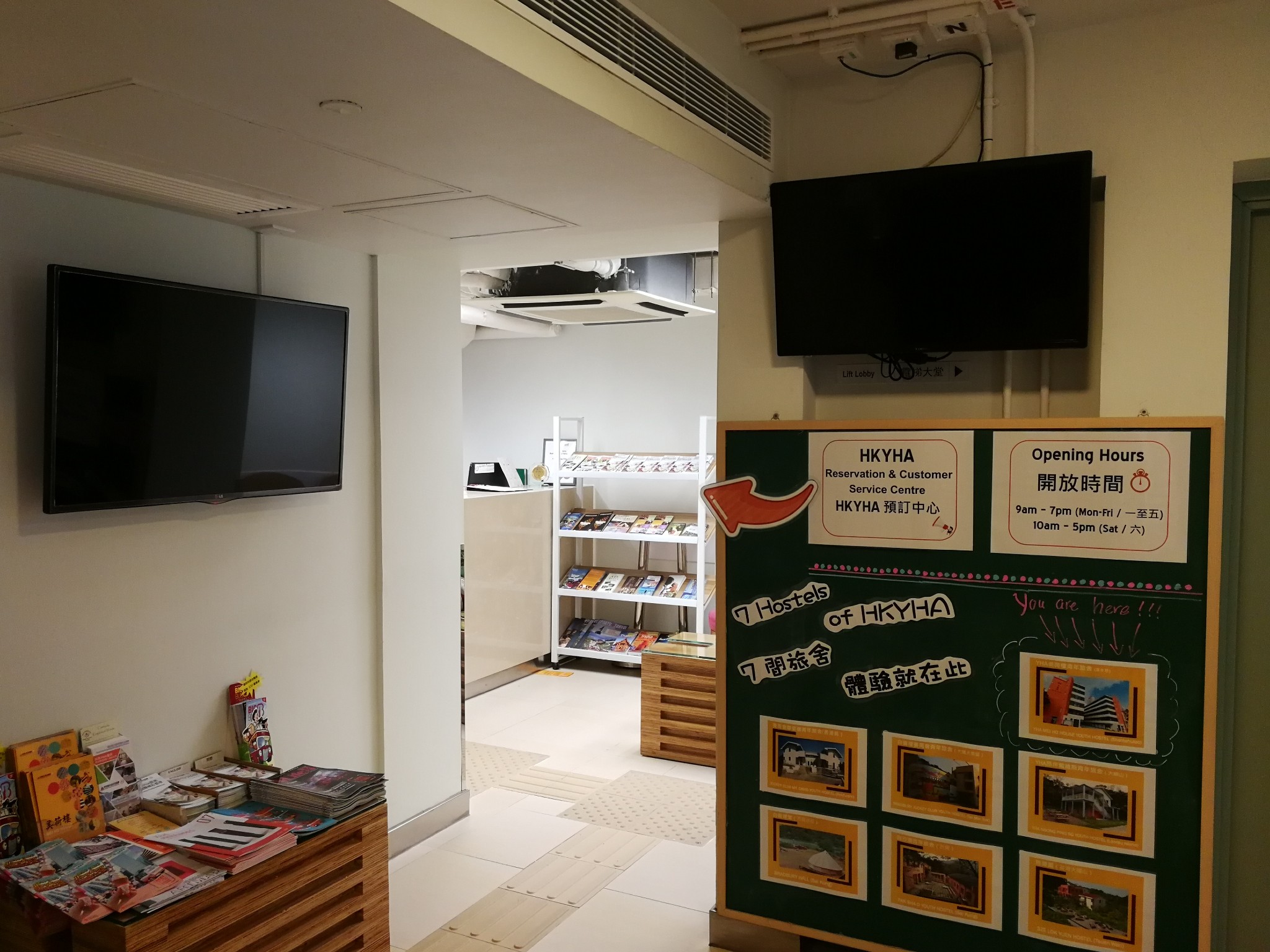 进入大门口,左边墙上有一幅介绍 香港 主要景点和各个青年旅舍的地图。