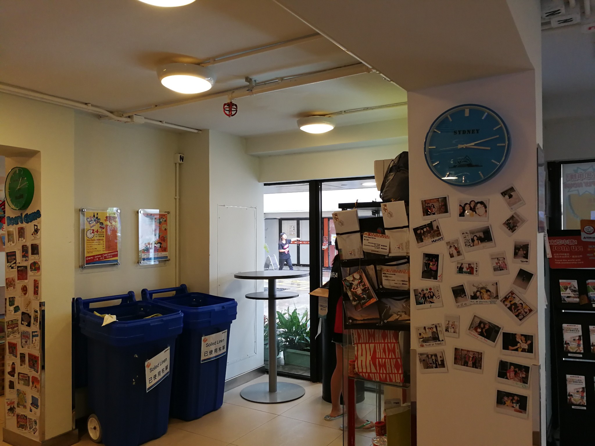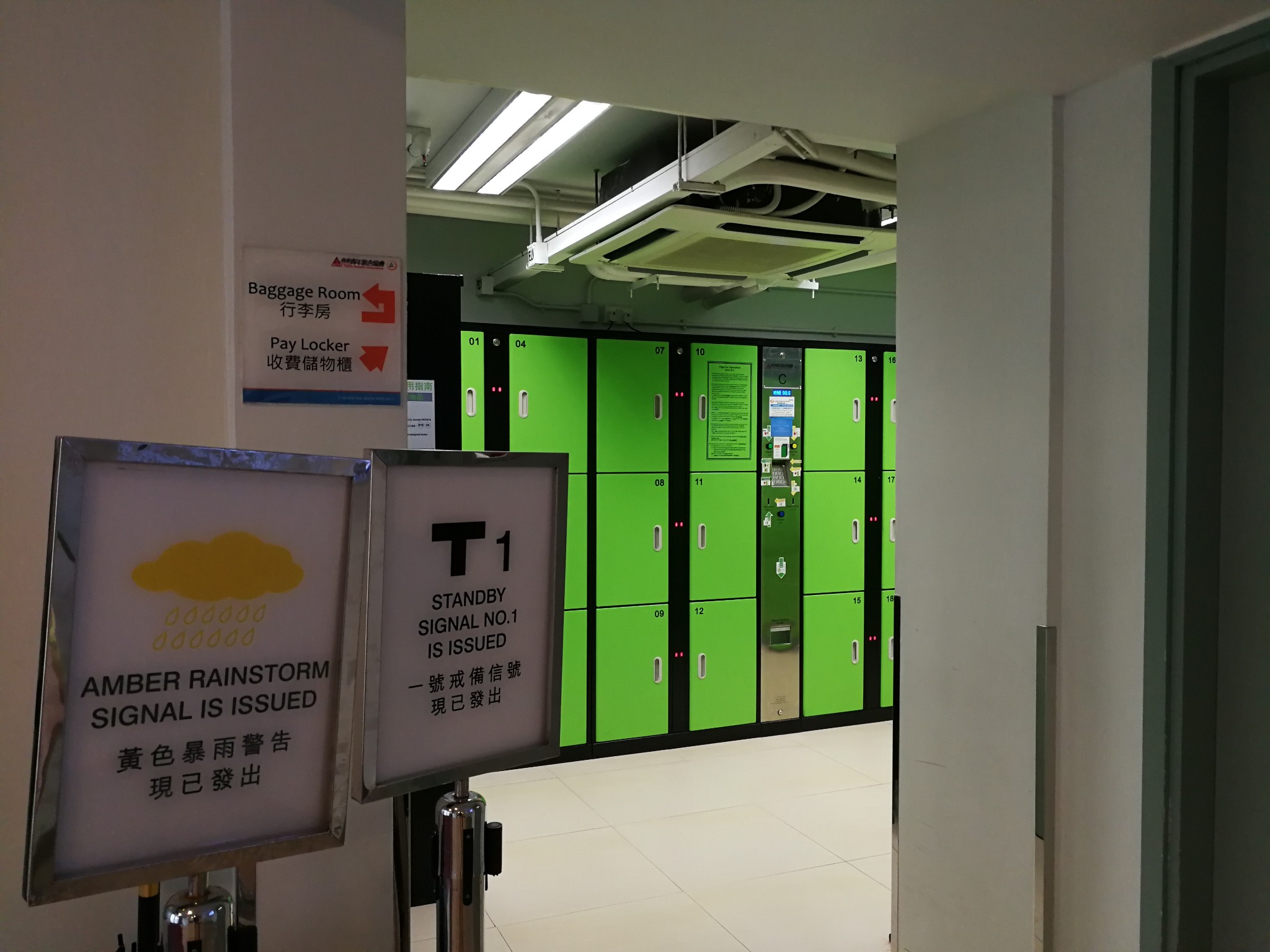 青年旅舍设置有储物柜,今天 香港 挂台风了,青年旅舍有显眼的告示通知。