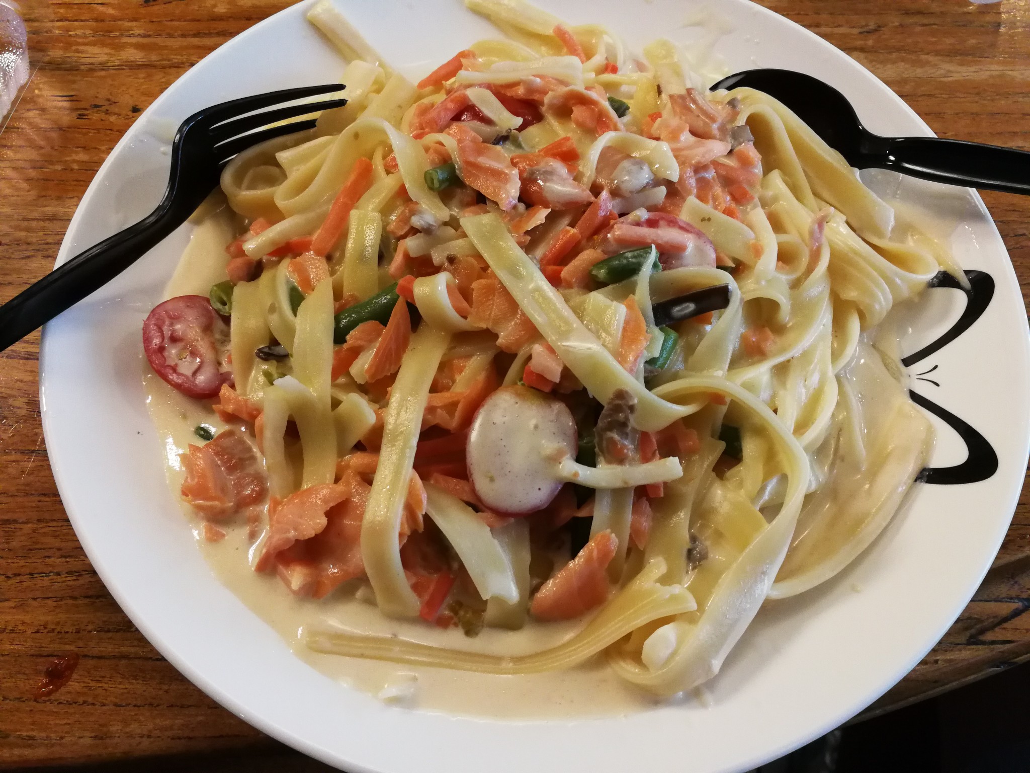 点了一份 意大利 面条充饥,味道还行。