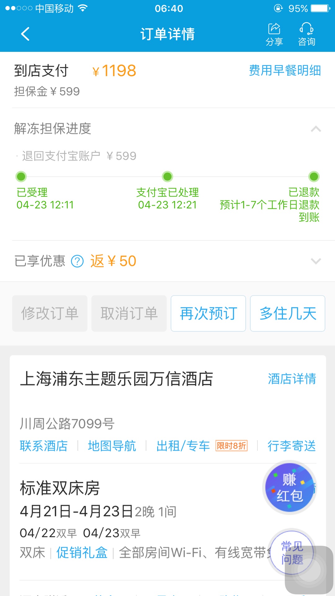 浦东主题乐园万信酒店: 1138元(2晚)