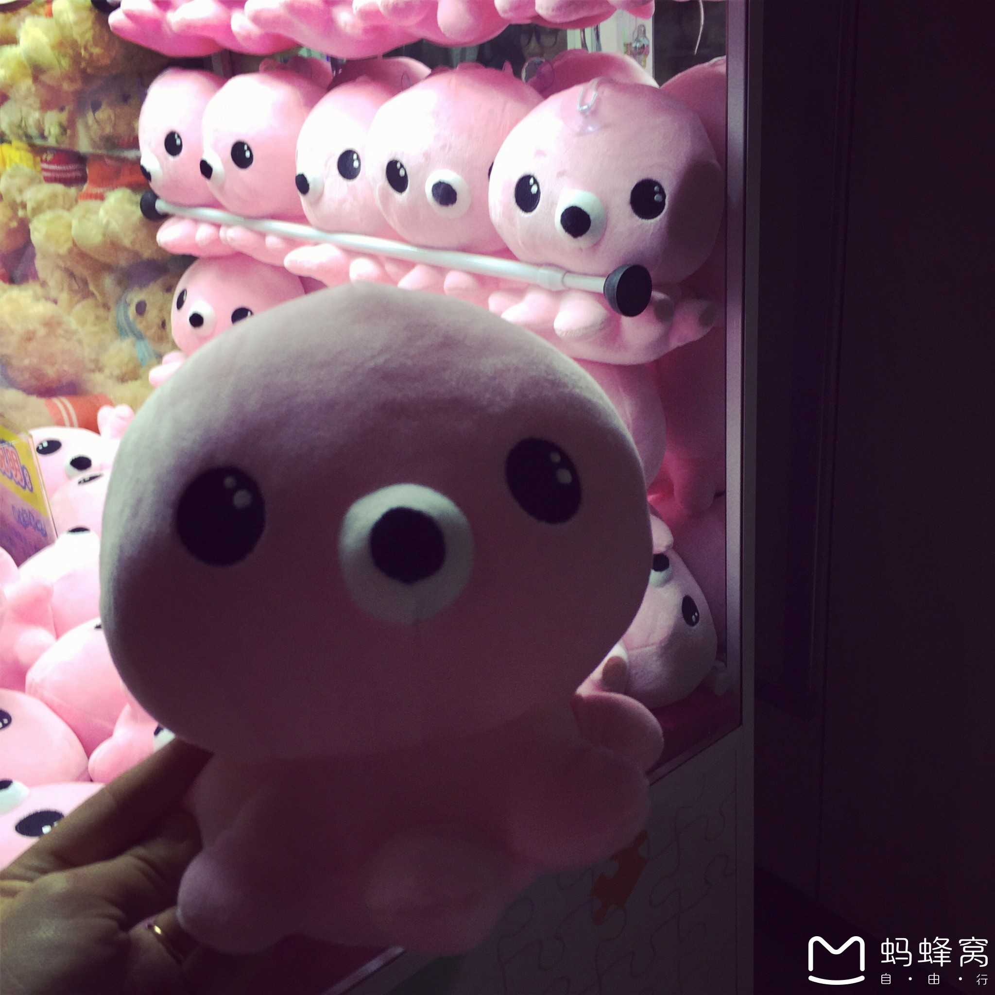 在等不靠谱先生去取行李的时候,我带着2娃在地铁站抓娃娃~~第二下,居然给抓到了个小章鱼~~~