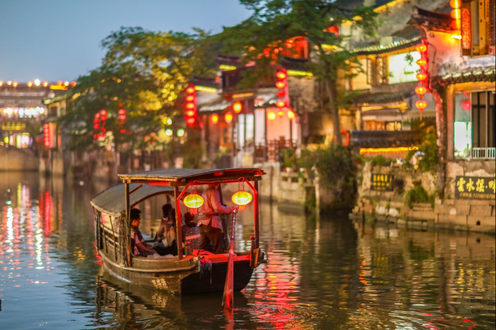 白墙黑瓦透着灵韵气息的水乡古镇