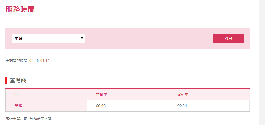 香港地铁中环站尾班车是01:04,过了还有通宵过海巴士,但设中环到油麻地的,须转车========== 如果你觉得TA的回答不错,快来给TA点个赞吧! 你的支持是对作者莫大的鼓励~ 显示全部